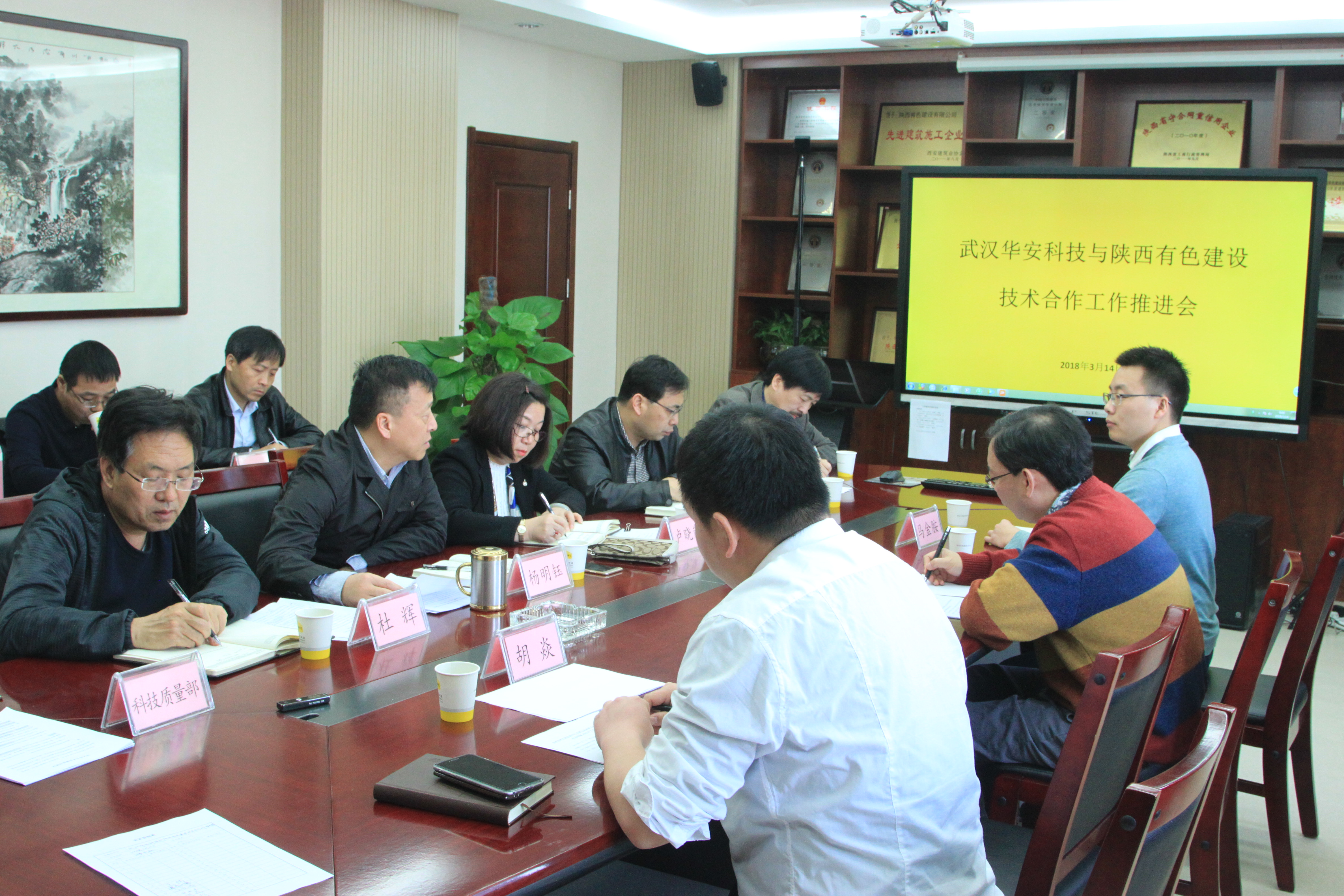 3月14日上午,公司在六樓會議室召開BIM技術工程應用中心2017年度工作總結會暨武漢華安科技股份有限公司與陜西有色建設有限公司技術合作推進會。會議由總經理楊明鈺主持。董事長盧曉嵐和公司相關領導、相關部門負責人、華安科技董事長代松、BIM中心負責人胡焱主任參加了此次會議。